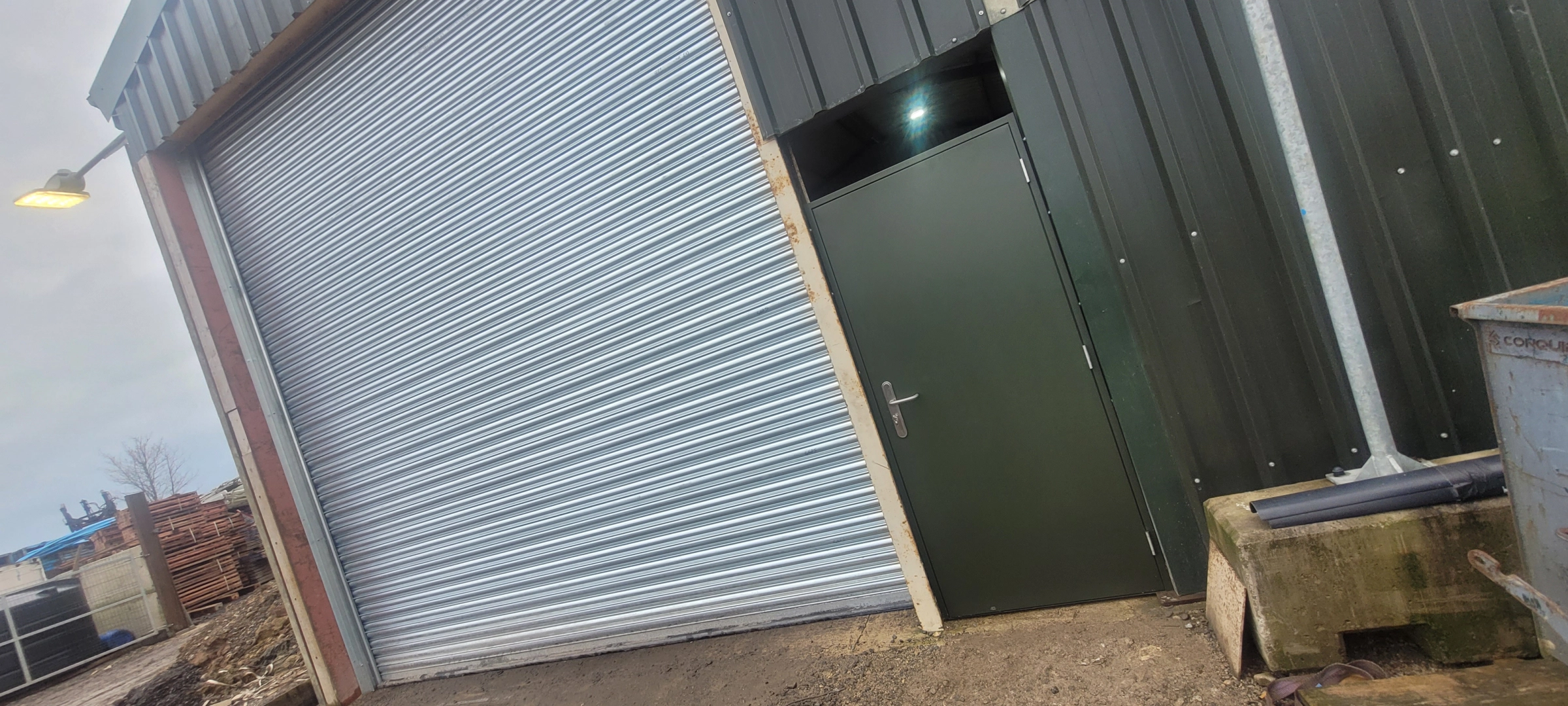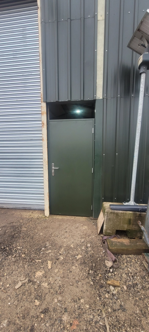 Start of our next job. 4 industrial insulated doors in juniper green and 3 personal doors for a new ...